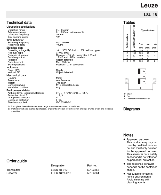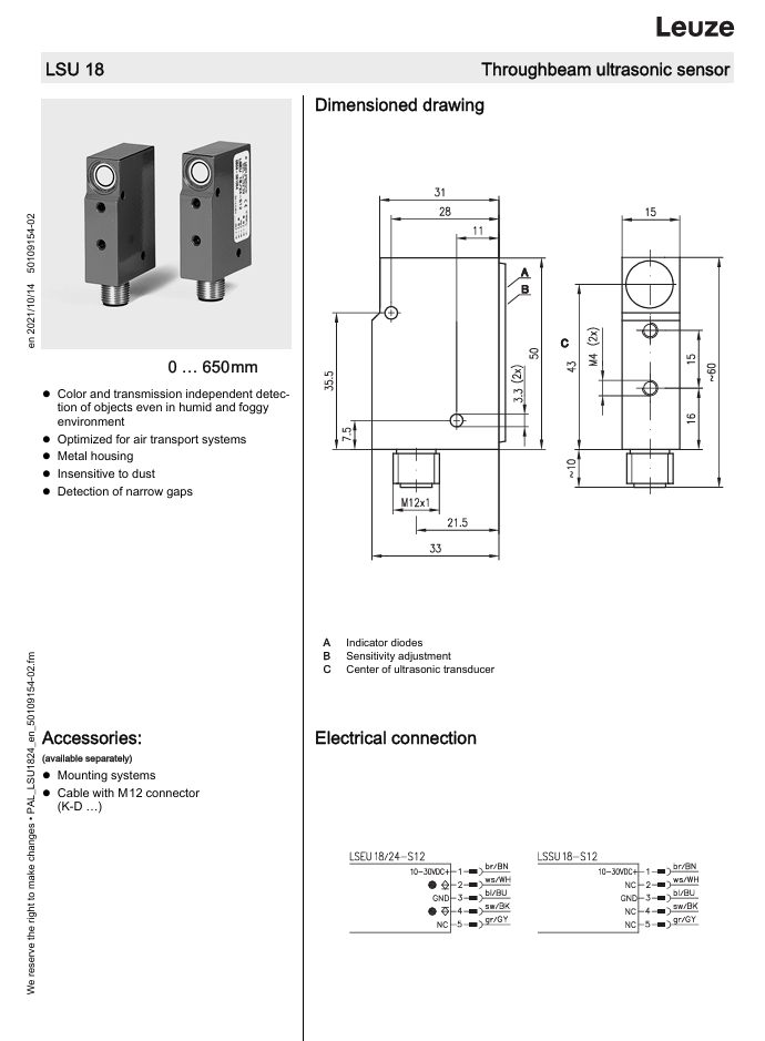 LEUZE LSEU Throughbeam ultrasonic sensor 18/24-S12 in stock