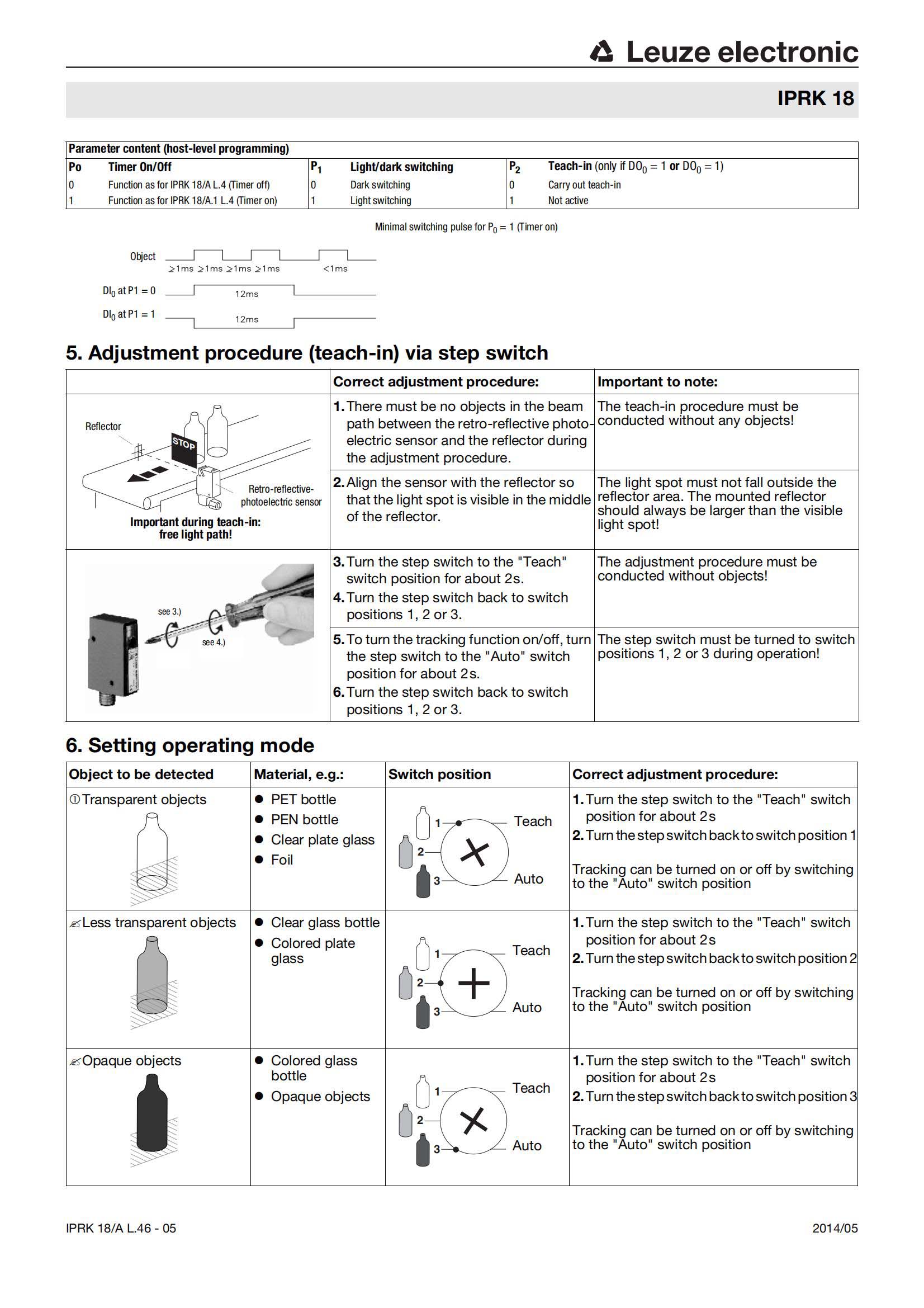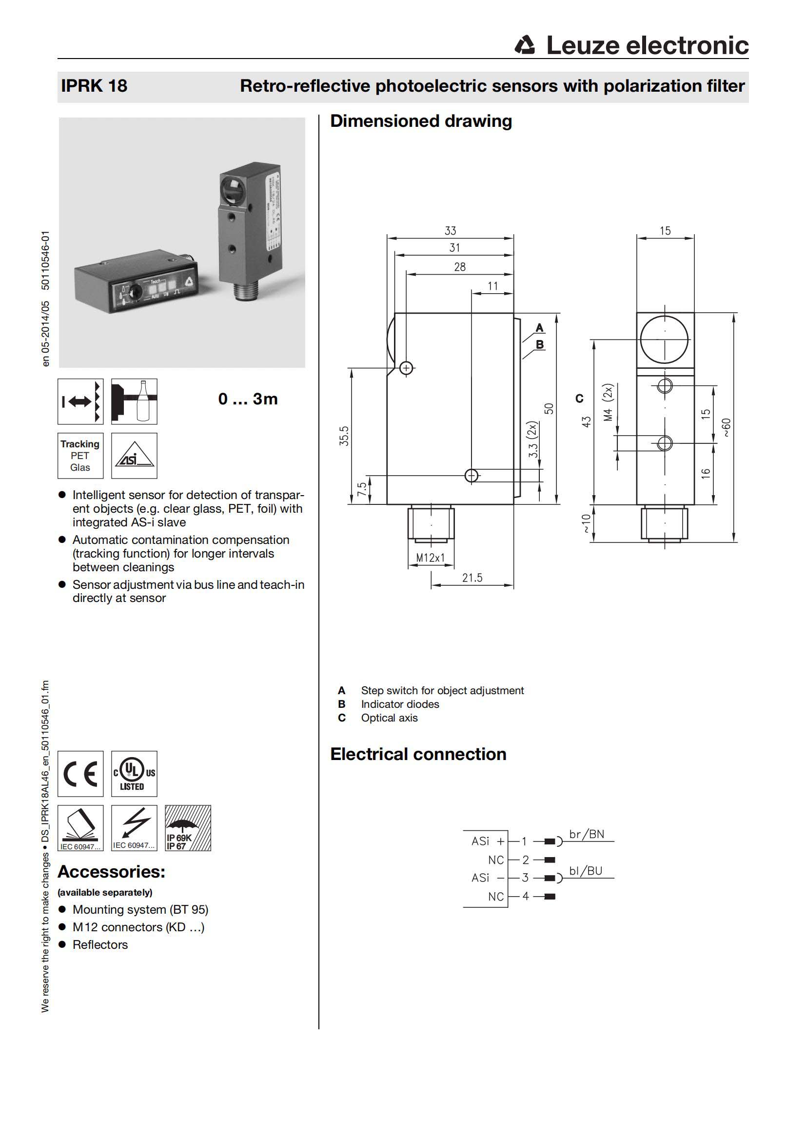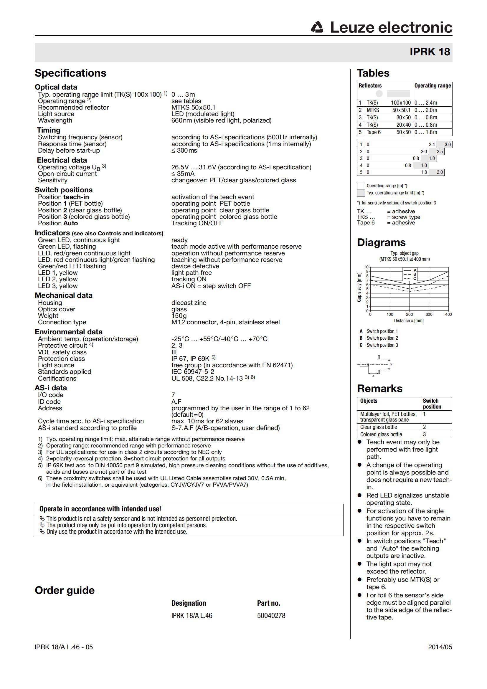 Sensores fotoeléctricos retrorreflectivos LEUZE IPRK 18/A L.46 en stock