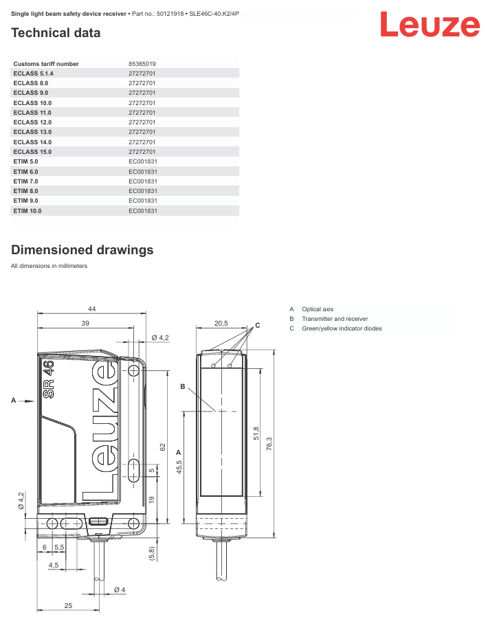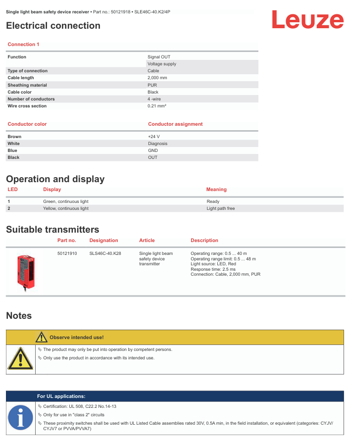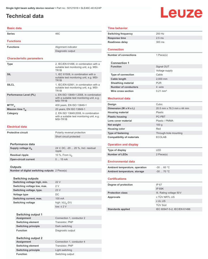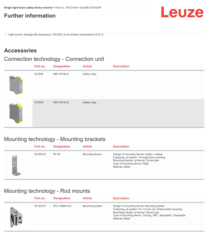 Dispositivos de seguridad de un solo haz LEUZE MSI-SR4B-01 en stock