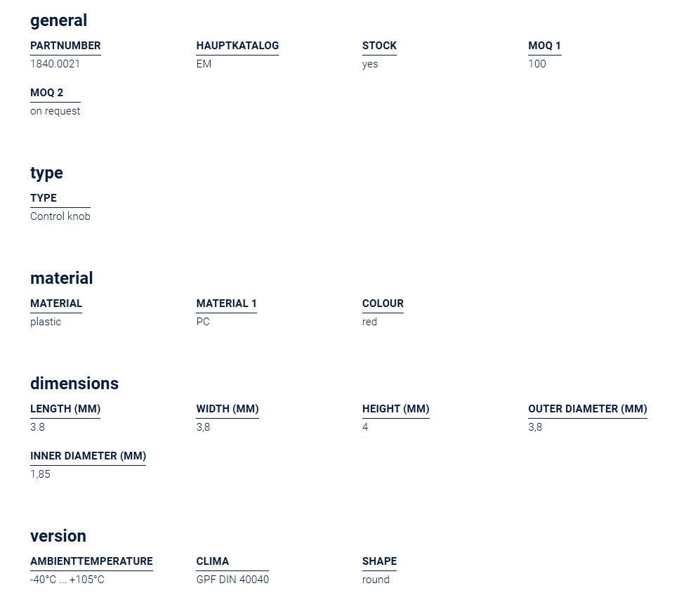 Perilla de control Mentor 1840.0021 en stock